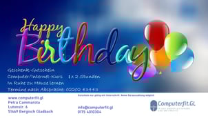 Ihr Kurs bei COMPUTERFIT.GL findet direkt bei Ihnen zu Hause statt. Sie lernen in gewohnter Umgebung mit dem eigenen Computer, Smartphone, eBook-Reader oder iPad, und sparen sich die Anfahrtszeit. Die Themen werden auf Ihre Vorkenntnisse und Interessen individuell abgestimmt, ebenso wie die Termine für die Kurseinheiten, ob morgens, mittags, nachmittags oder abends. Durch die Arbeit am eigenen PC lernen Sie an Ihrem Betriebssystem, ob Windows 10 oder auch Windows 11, und Ihren eigenen Programmen, z.B. Microsoft Office oder Open/Libre Office. Natürlich können wir auch mit Apple-Computern und Programmen arbeiten. (iMac, iPad, Mac Book Pro usw.).